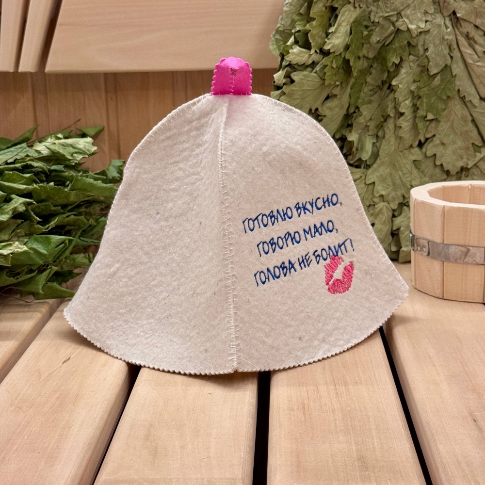 Шляпка "Готовлю вкусно, говорю мало, голова не болит!". войлок белый